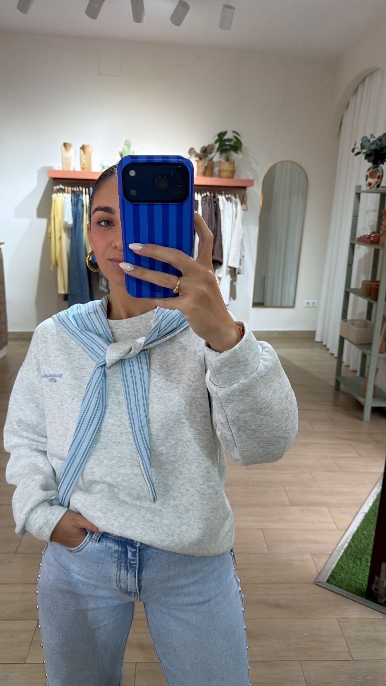 esta sudadera de algodón tra el cuello desmontable va sobre puesto y lo puedes poner en rayas o en el algodón de la sudadera